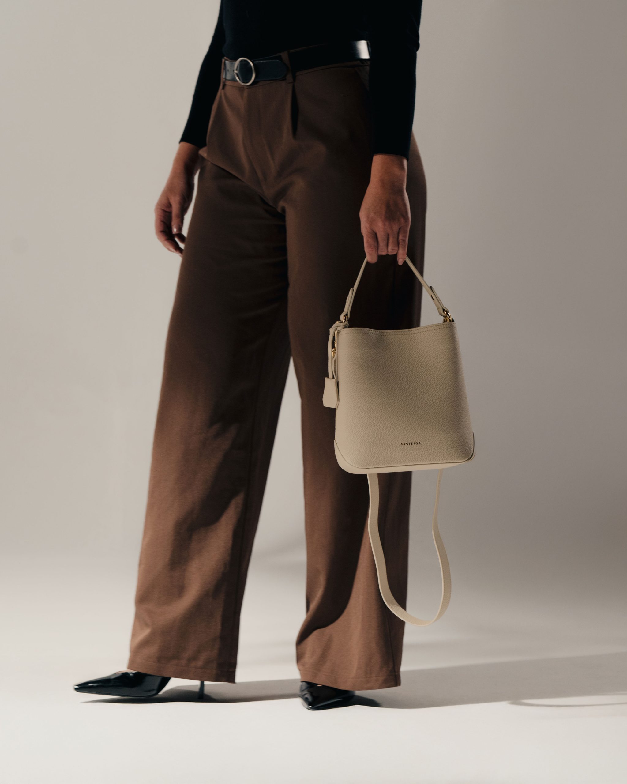 Linea Soft Bucket — Ivory. A refined bucket silhouette handcrafted in premium full-grain leather, designed for effortless everyday wear. Clean lines, soft structure, and timeless versatility.