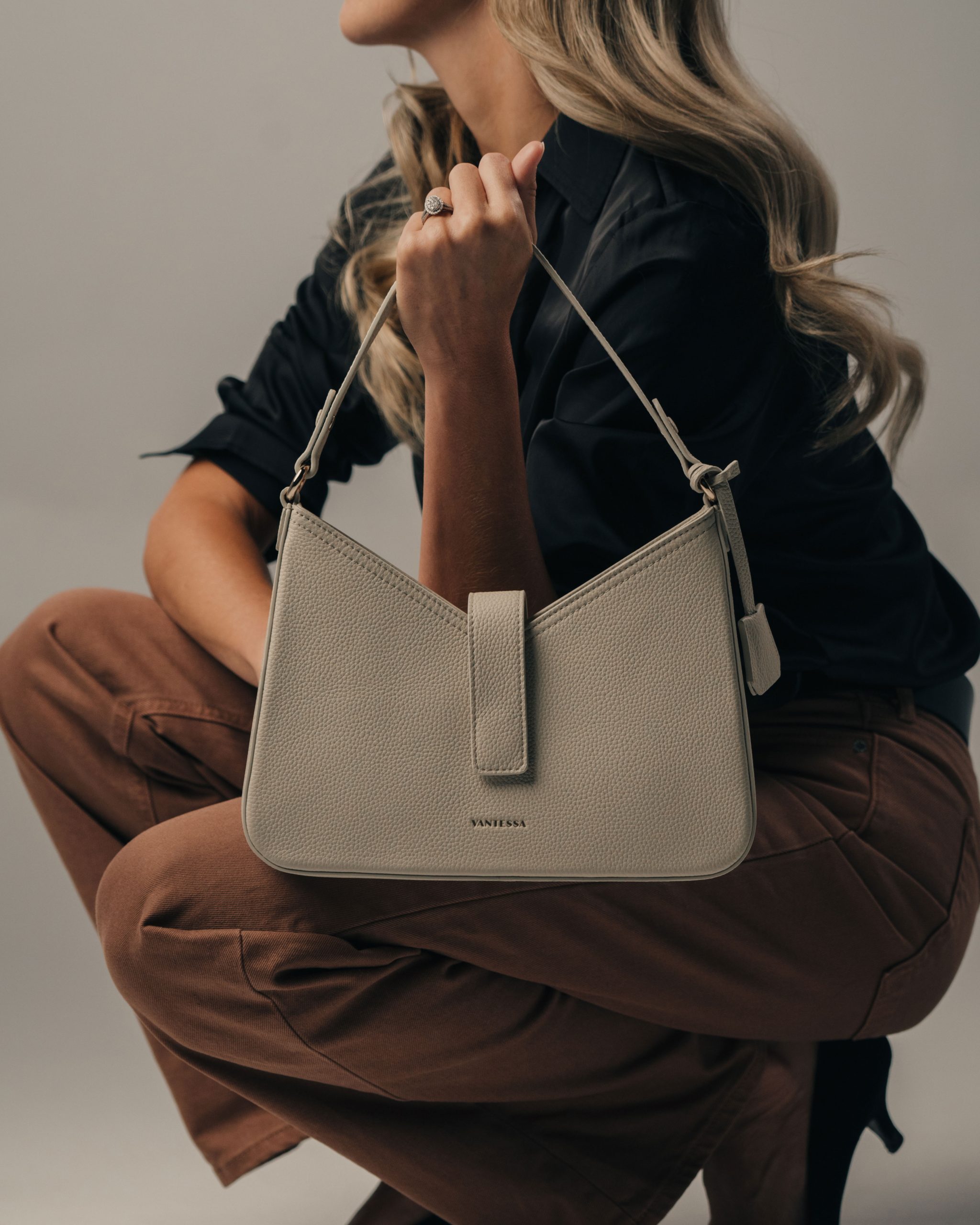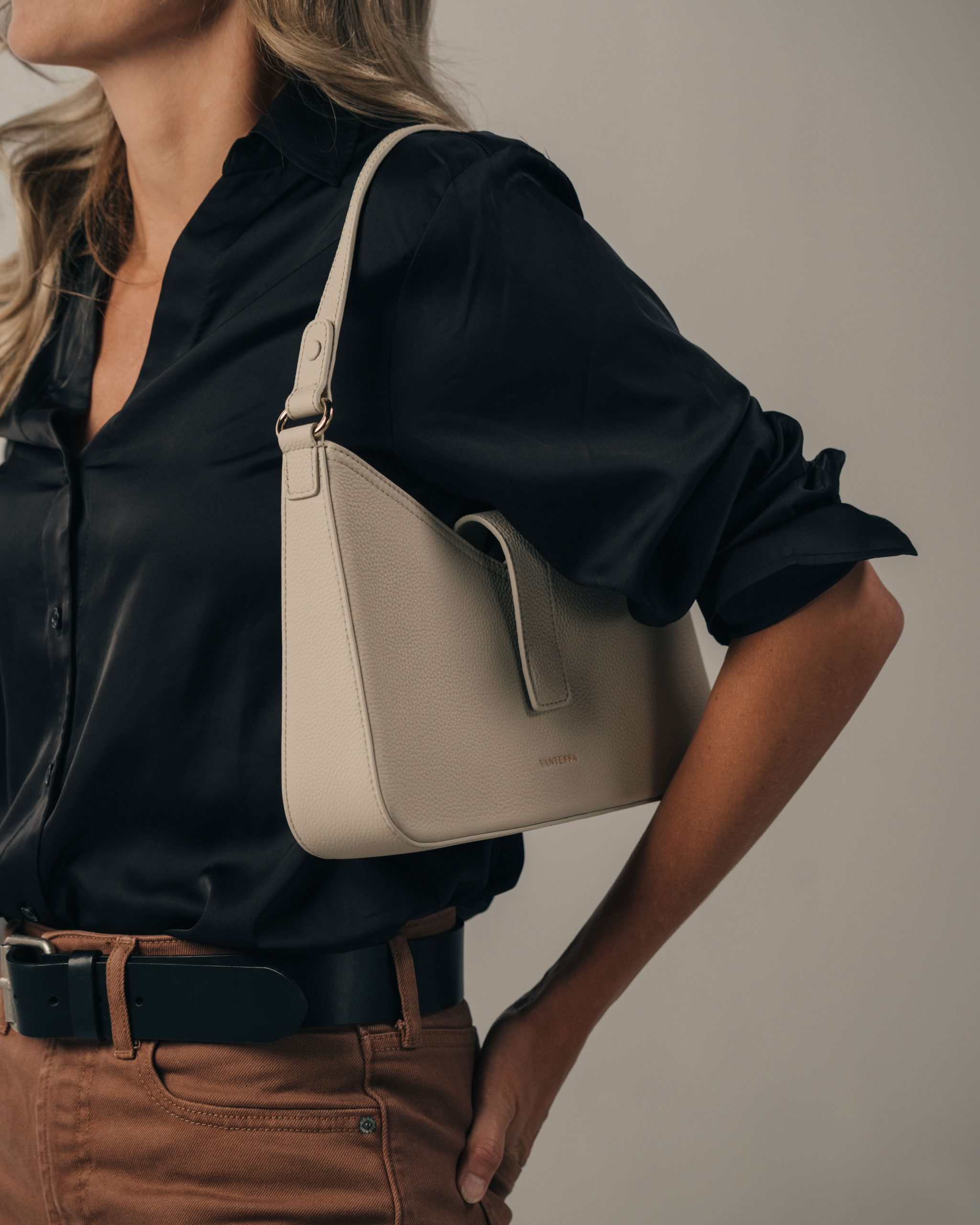 Sleek and softly structured, the Vela Shoulder in Porcelain is designed for everyday elegance with a refined edge. Handcrafted from premium full-grain leather, its warm Porcelain tone brings depth and versatility to a timeless silhouette.